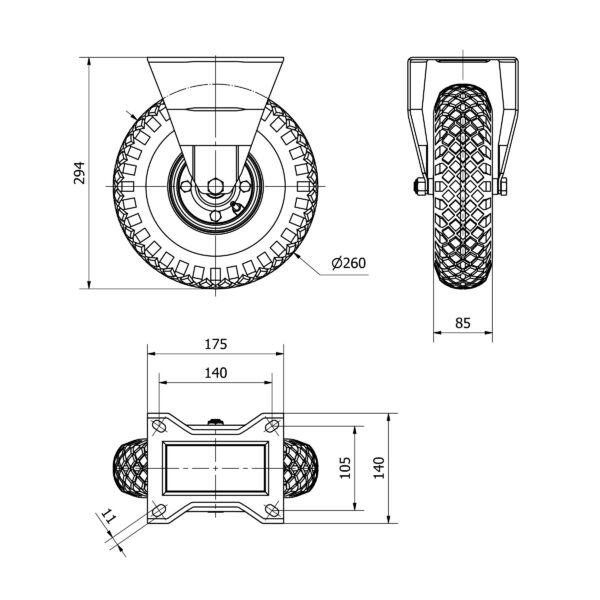 Rueda neumatica fija Alex diametro 260 mm. modelo 4-0923