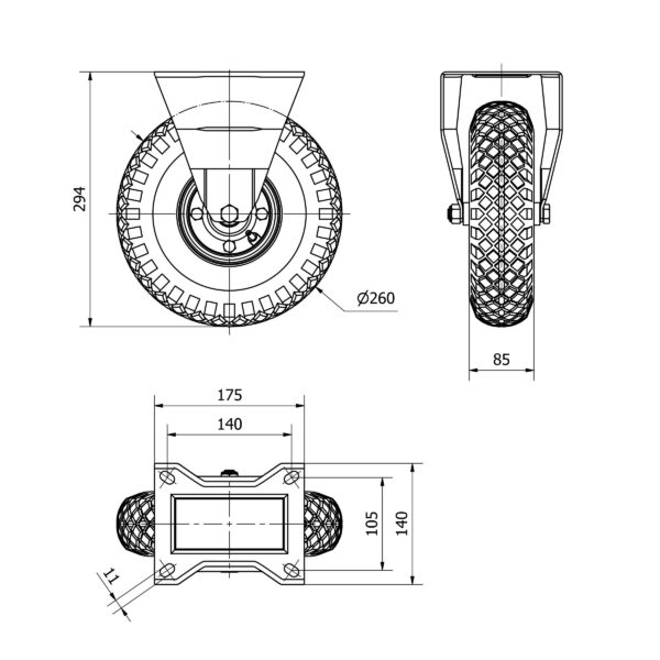 Rueda neumatica fija Alex diametro 260 mm. modelo 4-0925