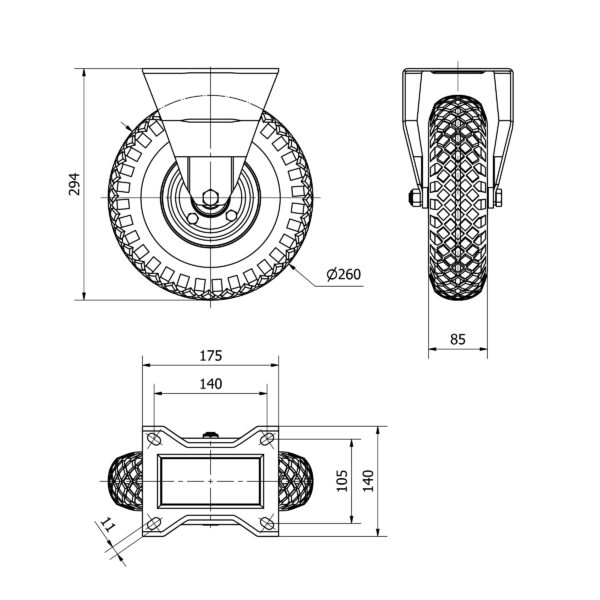 Rueda neumatica fija Alex diametro 260 mm. modelo 4-1629