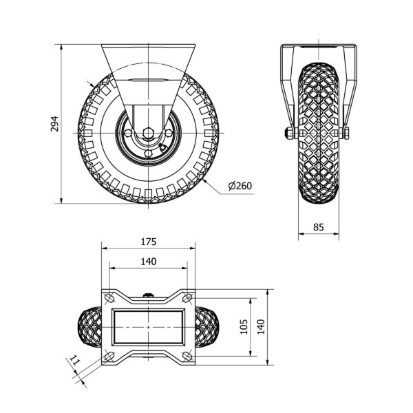 Rueda neumatica fija Alex diametro 260 mm. modelo 4-1634