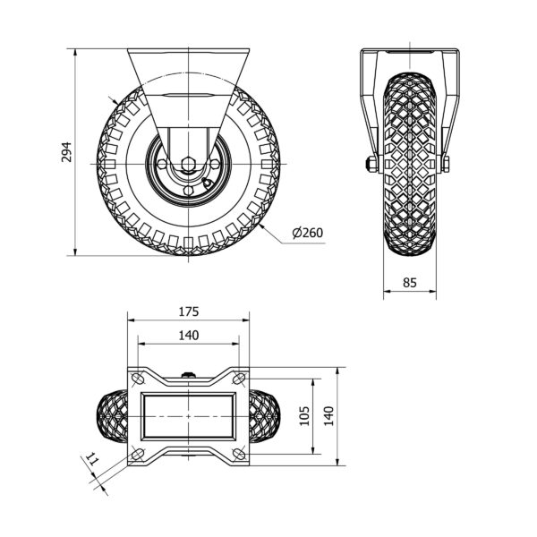 Rueda neumatica fija Alex diametro 260 mm. modelo 4-1636
