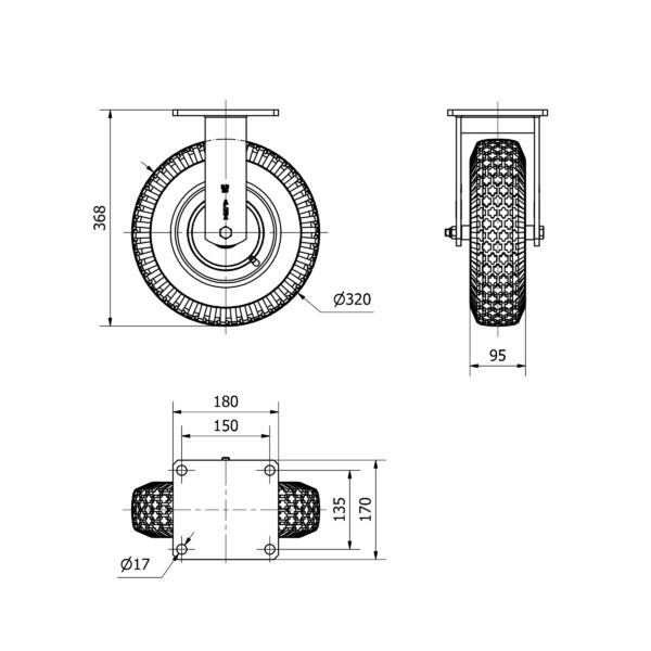 Rueda neumatica fija Alex diametro 320 mm. modelo 4-1261