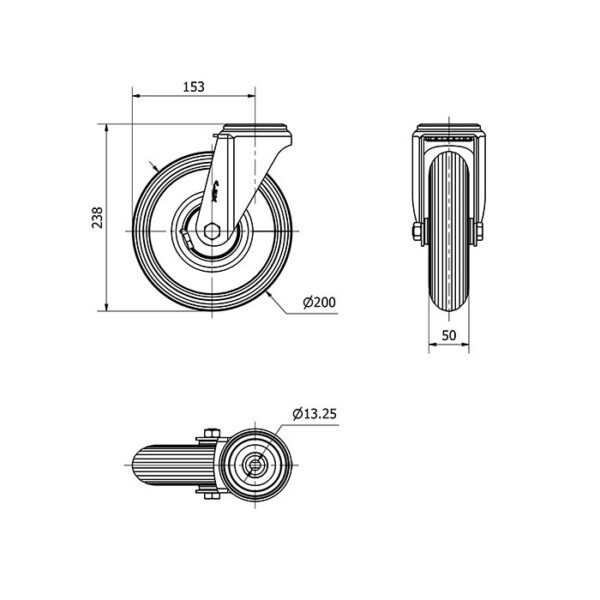 Rueda neumatica giratoria Alex diametro 200 mm. modelo 2-1028