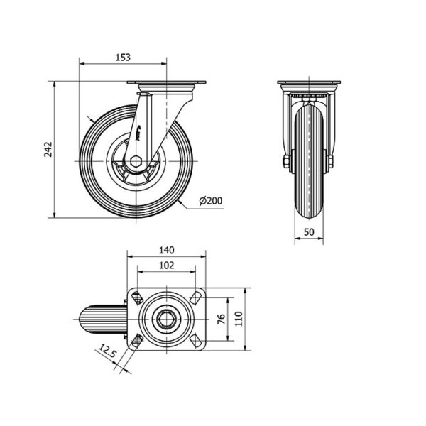 Rueda neumatica giratoria Alex diametro 200 mm. modelo 2-1108