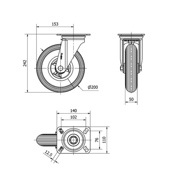 Rueda neumatica giratoria Alex diametro 200 mm. modelo 2-1117