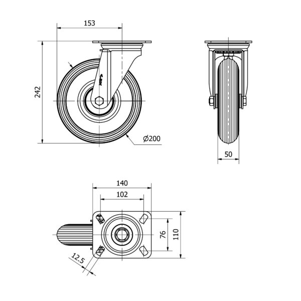 Rueda neumatica giratoria Alex diametro 200 mm. modelo 4-1262