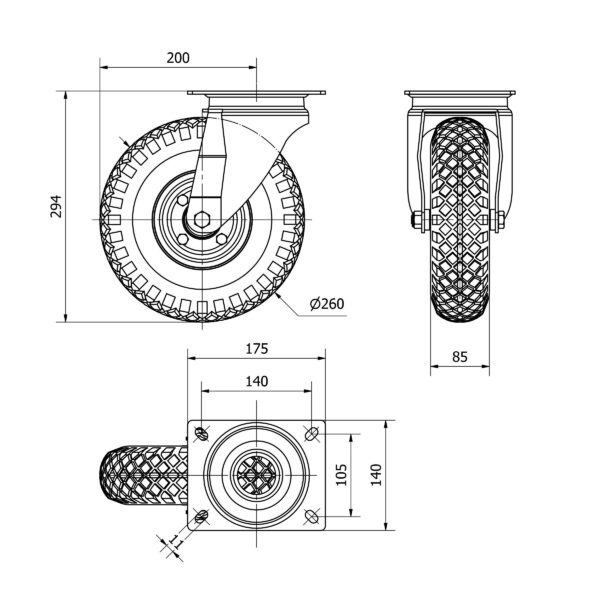 Rueda neumatica giratoria Alex diametro 260 mm. modelo 4-1628