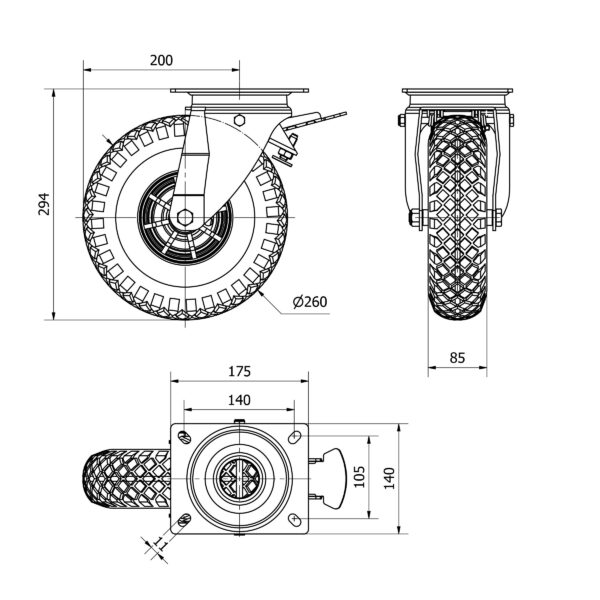 Rueda neumatica giratoria con freno Alex diametro 260 mm. modelo 4-0901