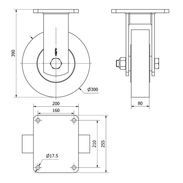 Rueda nylon fija Alex diametro 300 mm. modelo 2-3600