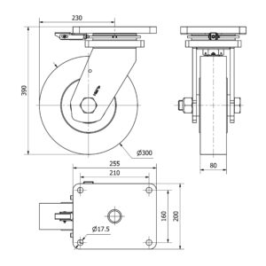 Rueda nylon giratoria con bloqueo direccional Alex diametro 300 mm. modelo 2-4251