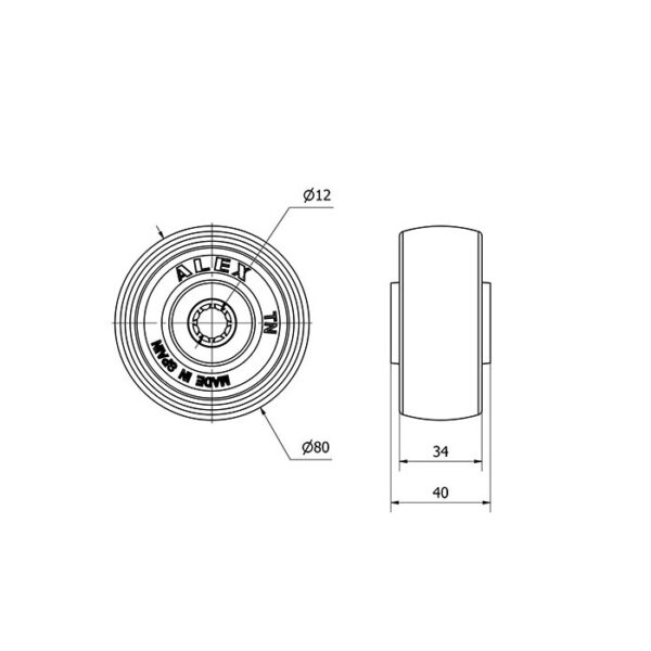 Rueda nylon-poliamida aro suelto Alex diametro 80 mm. modelo 2-0159 EAN 8422202201597