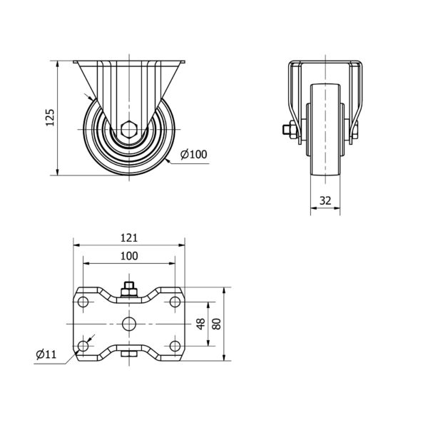 Rueda nylon-poliamida fija Alex diametro 100 mm. modelo 4-0113