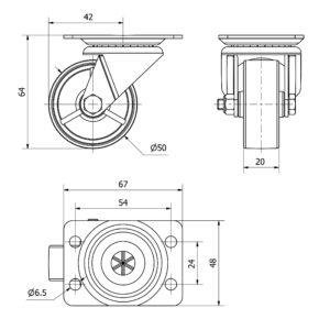 Rueda nylon-poliamida fija Alex diametro 100 mm. modelo 4-0113