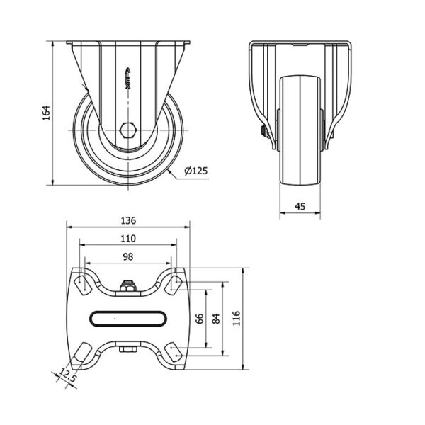 Rueda nylon-poliamida fija Alex diametro 125 mm. modelo 2-0216 EAN 8422202202167