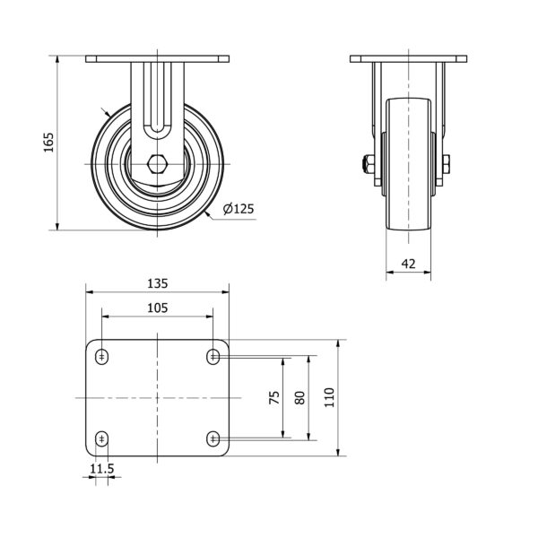 Rueda nylon-poliamida fija Alex diametro 125 mm. modelo 4-0797