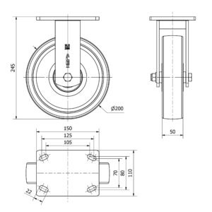 Rueda nylon-poliamida fija Alex diametro 150 mm. modelo 2-3674