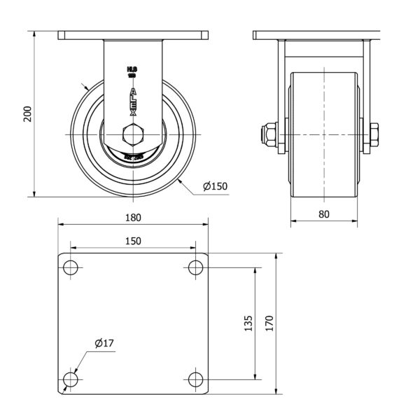 Rueda nylon-poliamida fija Alex diametro 150 mm. modelo 2-4425 EAN 8422202244259