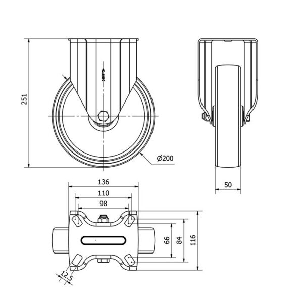 Rueda nylon-poliamida fija Alex diametro 200 mm. modelo 2-0098