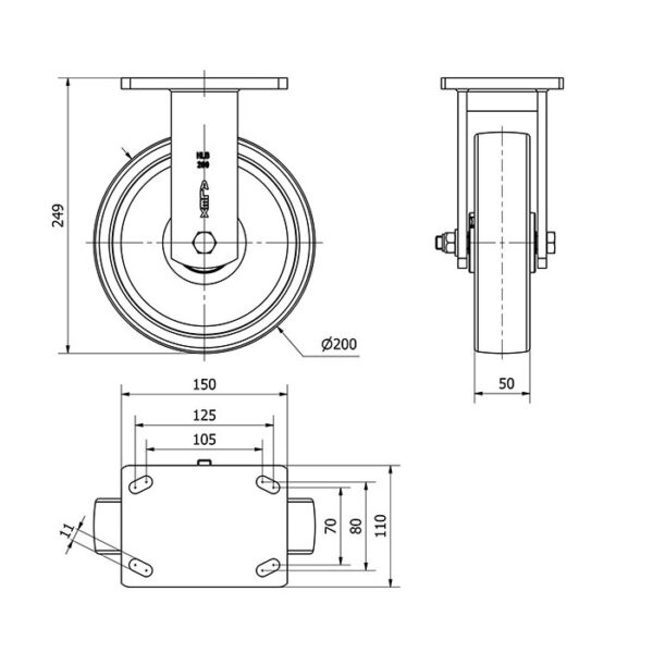 Rueda nylon-poliamida fija Alex diametro 200 mm. modelo 2-0478