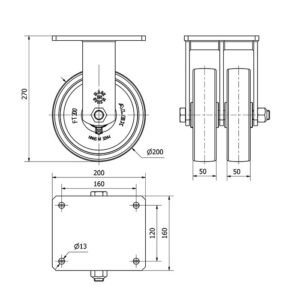 Rueda nylon-poliamida fija Alex diametro 200 mm. modelo 2-1879