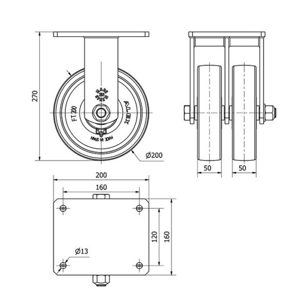 Las ruedas Alex serie HLG-FT son ruedas dobles de nylon extrafuerte, indicadas para soportar altas cargas hasta 2.500 Kg. Se utilizan en útiles de transporte logístico, grúas que transportan materiales pesados, así como plataformas elevadoras y gradas móviles, principalmente en el sector aeronáutico, ferroviario y automoción. FT: Ruedas especialmente indicadas para aplicaciones en industrias alimentarias y químicas. No manchan el suelo. Extrafuertes. Alta resistencia a golpes y choques.