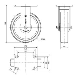 Rueda nylon-poliamida fija Alex diametro 200 mm. modelo 2-3675