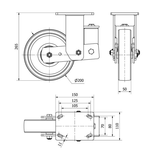 Rueda nylon-poliamida fija Alex diametro 200 mm. modelo 2-3957