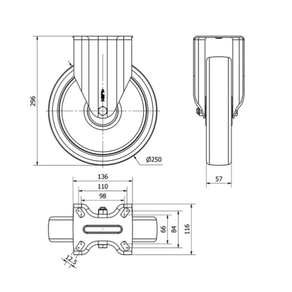 Rueda nylon-poliamida fija Alex diametro 250 mm. 2-0090