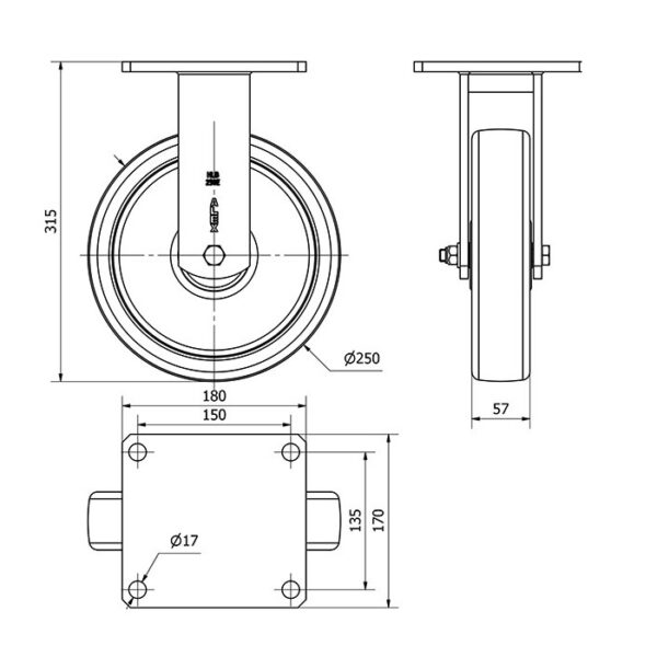 Rueda nylon-poliamida fija Alex diametro 250 mm. modelo 2-0480 EAN 8422202204802