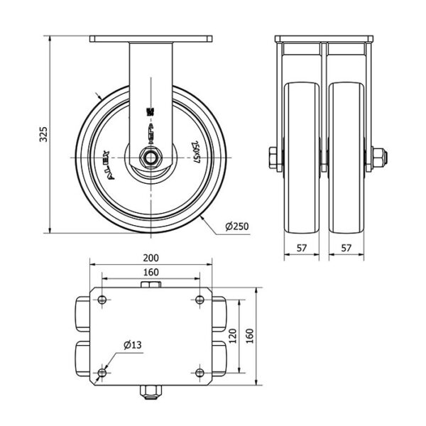 Rueda nylon-poliamida fija Alex diametro 250 mm. modelo 2-1881