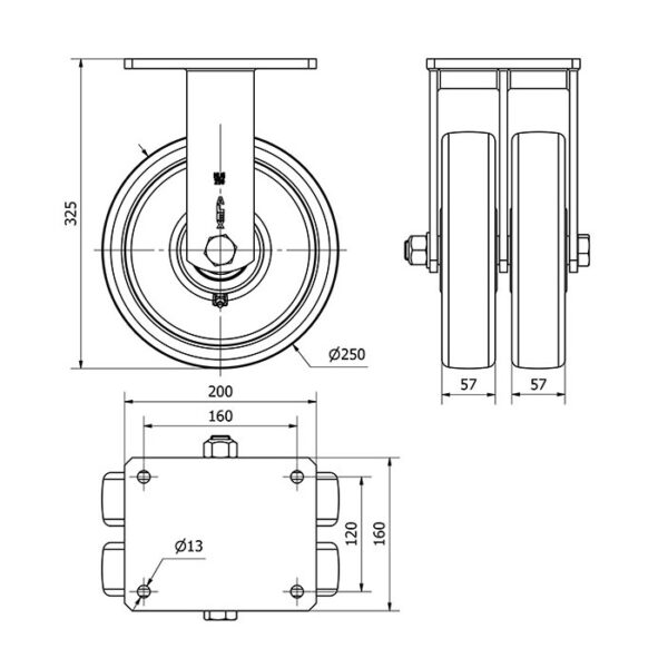 Las ruedas Alex serie HLG-FT son ruedas dobles de nylon extrafuerte, indicadas para soportar altas cargas hasta 2.500 Kg. Se utilizan en útiles de transporte logístico, grúas que transportan materiales pesados, así como plataformas elevadoras y gradas móviles, principalmente en el sector aeronáutico, ferroviario y automoción. FT: Ruedas especialmente indicadas para aplicaciones en industrias alimentarias y químicas. No manchan el suelo. Extrafuertes. Alta resistencia a golpes y choques.