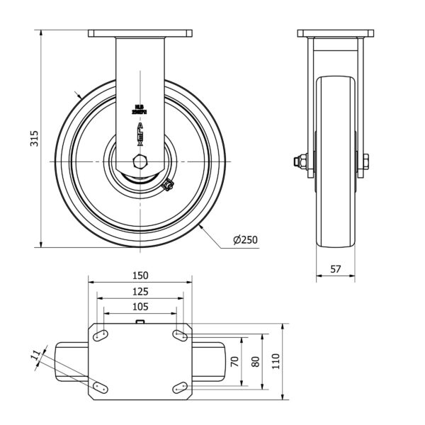Las ruedas Alex serie HLB-FT son ruedas de nylon extrafuerte, indicadas para soportar altas cargas de hasta 1,250 Kg. Se utilizan en útiles de transporte logístico, gradas móviles, utillaje, grúas que transportan materiales pesados, así como plataformas elevadoras y carros de transporte. FT: adecuada para aplicaciones en industrias alimentarias y químicas. No mancha el suelo. Extrafuerte. Conserveras.