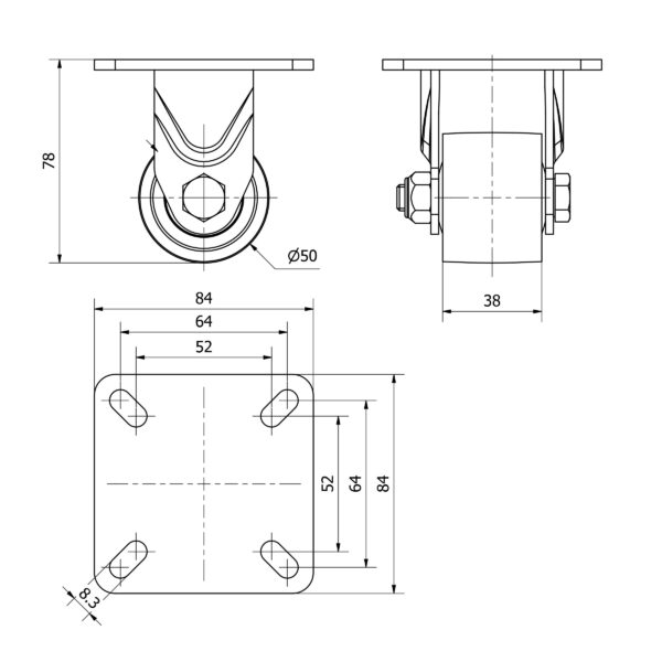 Rueda nylon-poliamida fija Alex diametro 50 mm. modelo 2-4543