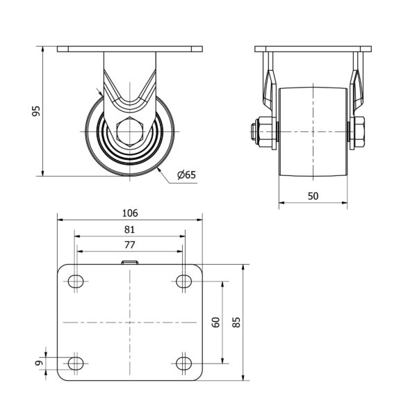 Rueda nylon-poliamida fija Alex diametro 65 mm. modelo 2-4546