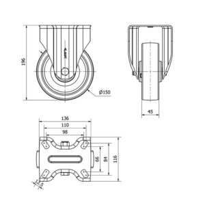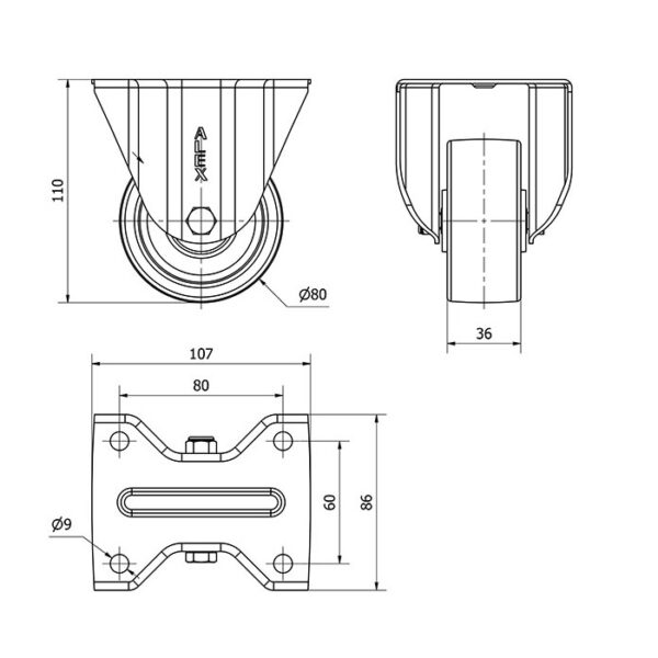 Rueda nylon-poliamida fija Alex diametro 80 mm. modelo 2-2688