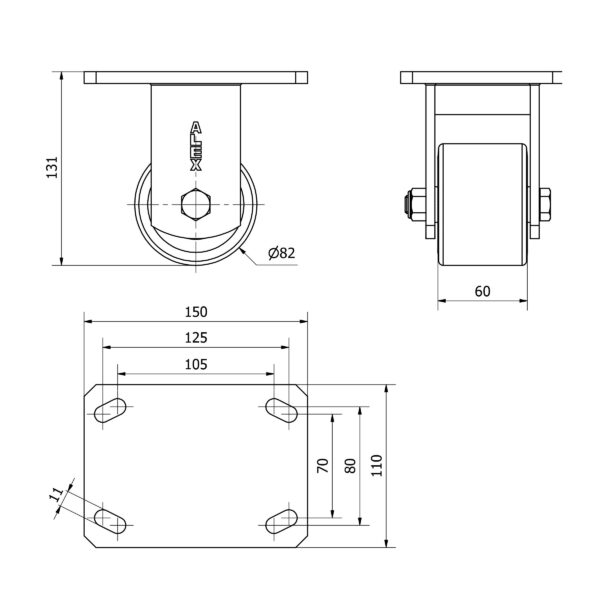 Rueda nylon-poliamida fija Alex diametro 82 mm. modelo 2-3998