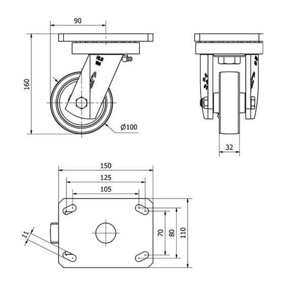 Rueda nylon-poliamida giratoria Alex diametro 100 mm. modelo 2-0463