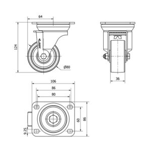 Rueda nylon-poliamida giratoria Alex diametro 100 mm. modelo 2-1798 EAN 8422202217987