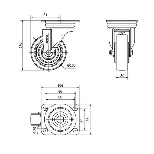 Rueda nylon-poliamida giratoria Alex diametro 100 mm. modelo 2-1799