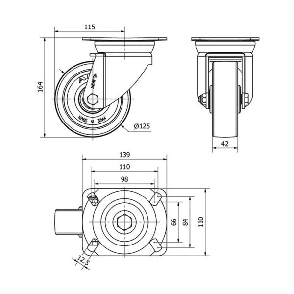 Rueda nylon-poliamida giratoria Alex diametro 125 mm. modelo 2-1800 EAN 8422202218007