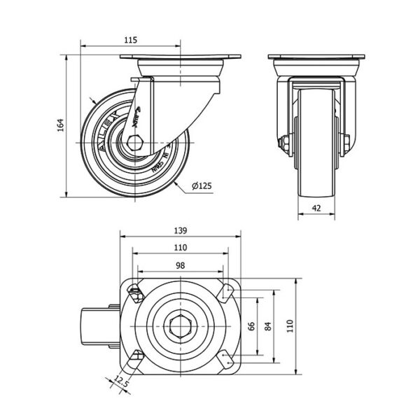 Rueda nylon-poliamida giratoria Alex diametro 125 mm. modelo 2-1801 EAN 8422202218014