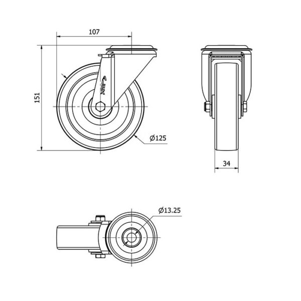 Rueda nylon-poliamida giratoria Alex diametro 125 mm. modelo 2-2703 EAN 8422202227030