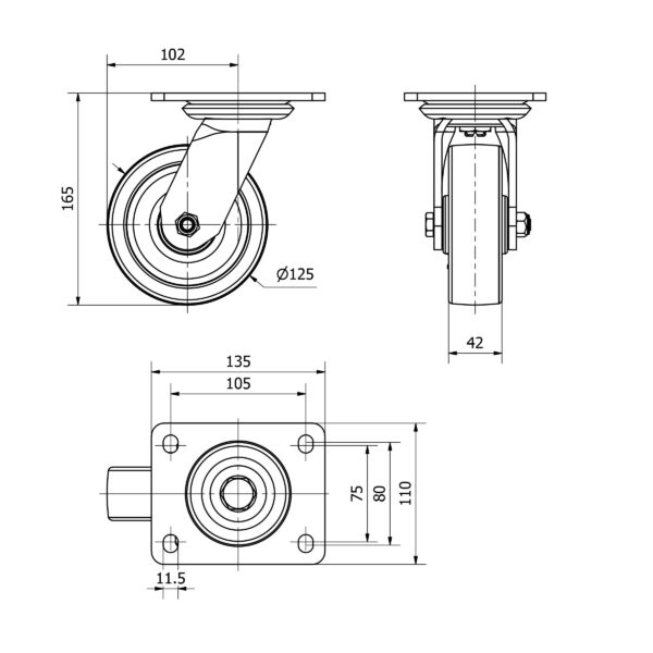 Rueda nylon-poliamida giratoria Alex diametro 125 mm. modelo 4-0813 EAN 8422202408132
