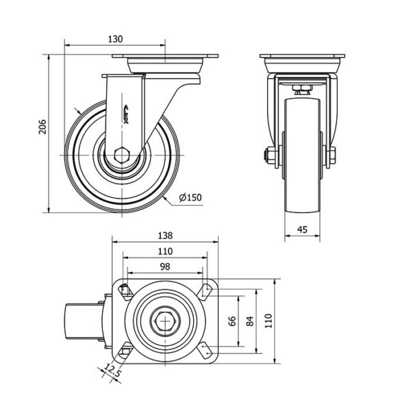 Rueda nylon-poliamida giratoria Alex diametro 150 mm. modelo 2-0217