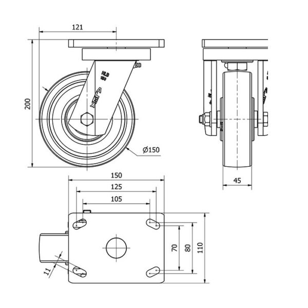 Rueda nylon-poliamida giratoria Alex diametro 150 mm. modelo 2-0468 EAN 8422202204680