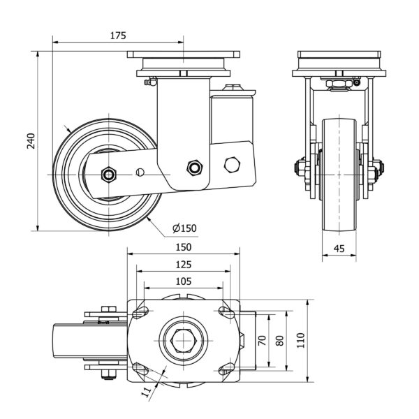 Rueda nylon-poliamida giratoria Alex diametro 150 mm. modelo 2-3954 EAN 8422202239545