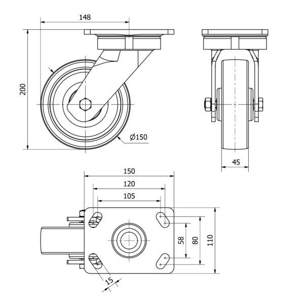 Rueda nylon-poliamida giratoria Alex diametro 150 mm. modelo 4-0143 EAN 8422202401430