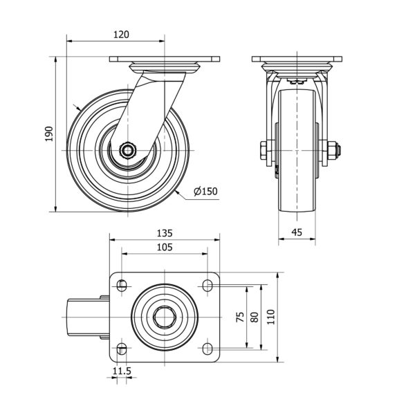 Rueda nylon-poliamida giratoria Alex diametro 150 mm. modelo 4-0800 EAN 8422202408002