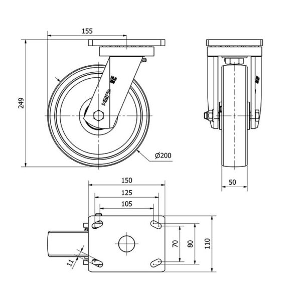 Rueda nylon-poliamida giratoria Alex diametro 200 mm. modelo 2-0469 EAN 8422202204697