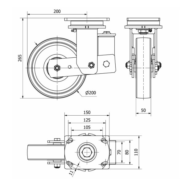 Rueda nylon-poliamida giratoria Alex diametro 200 mm. modelo 2-3955